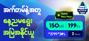 Quick Play Pack သည် မိမိအချိန်အားလျော်စွာ ဂိမ်းများကို ၂ နာရီကြာ ကစားနိုင်ရန် အဆင်ပြေသည့်ဒေတာပက်ကေ့ဂျ် ဖြစ်ပါသည်။