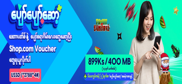 ပျော်ပျော်ဆော့ ဒေတာပတ်ကို ၈၉၉ ကျပ်ဖြင့်ဝယ်ယူပြီး ကြိုက်ရာသုံးဖို့ ဒေတာ 400MB နှင့် eGamez ၇ရက်စာဂိမ်းများဆော့ကစားပြီး ၅၂,၀၀၀ ကျပ်အထိ shop.com ဘောင်ချာဆုများ ဆုကြေးအဖြစ် ရယူနိုင်သော အခွင့်အရေး။